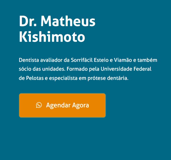 Dentista avaliador da Sorrifácil Esteio e Viamão e também sócio das unidades. Formado pela Universidade Federal de Pelotas e especialista em prótese dentária.